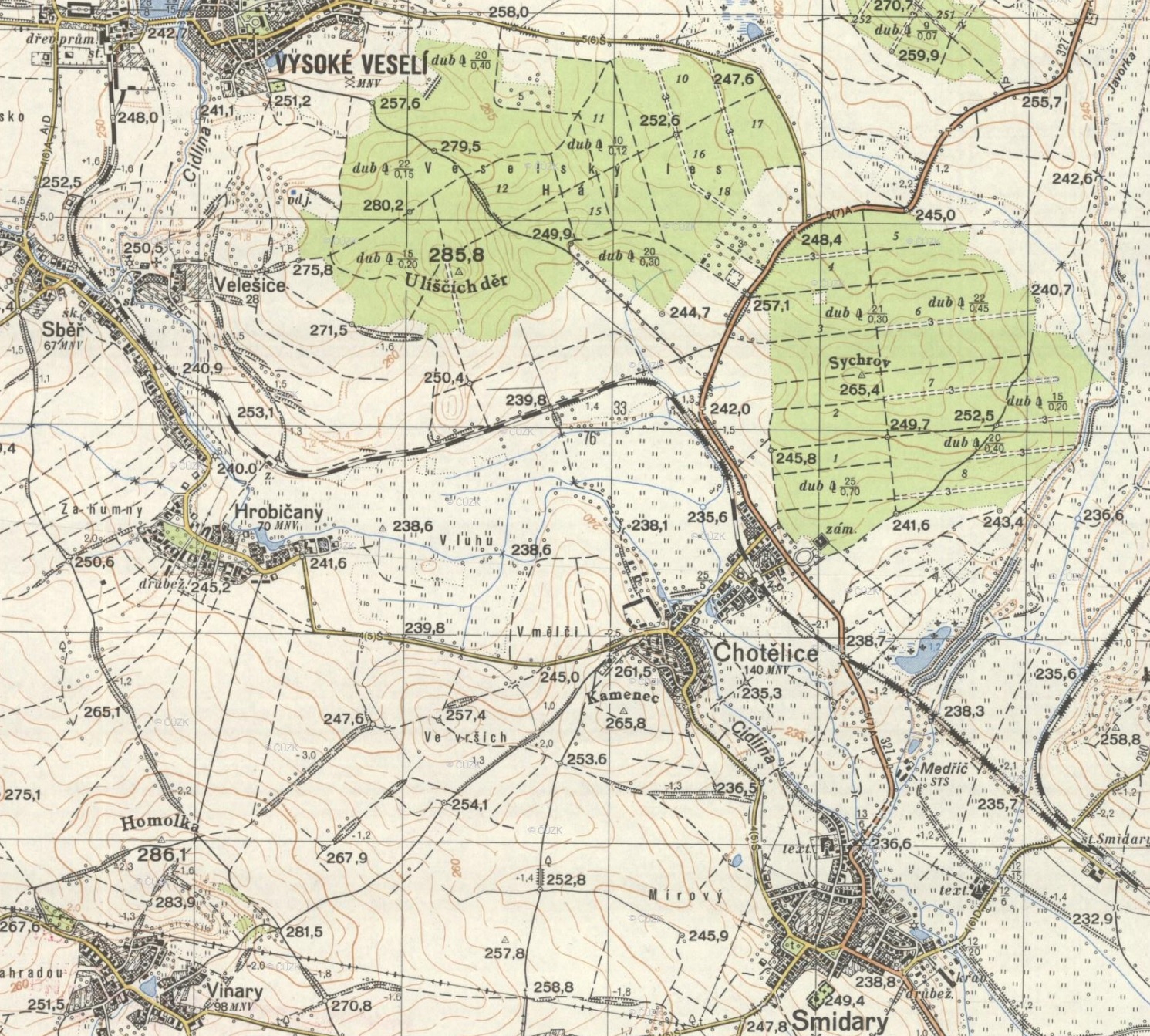 Soubor:ZelTrat-Smidary-Vysoke-Veseli-mapa-1954.jpg